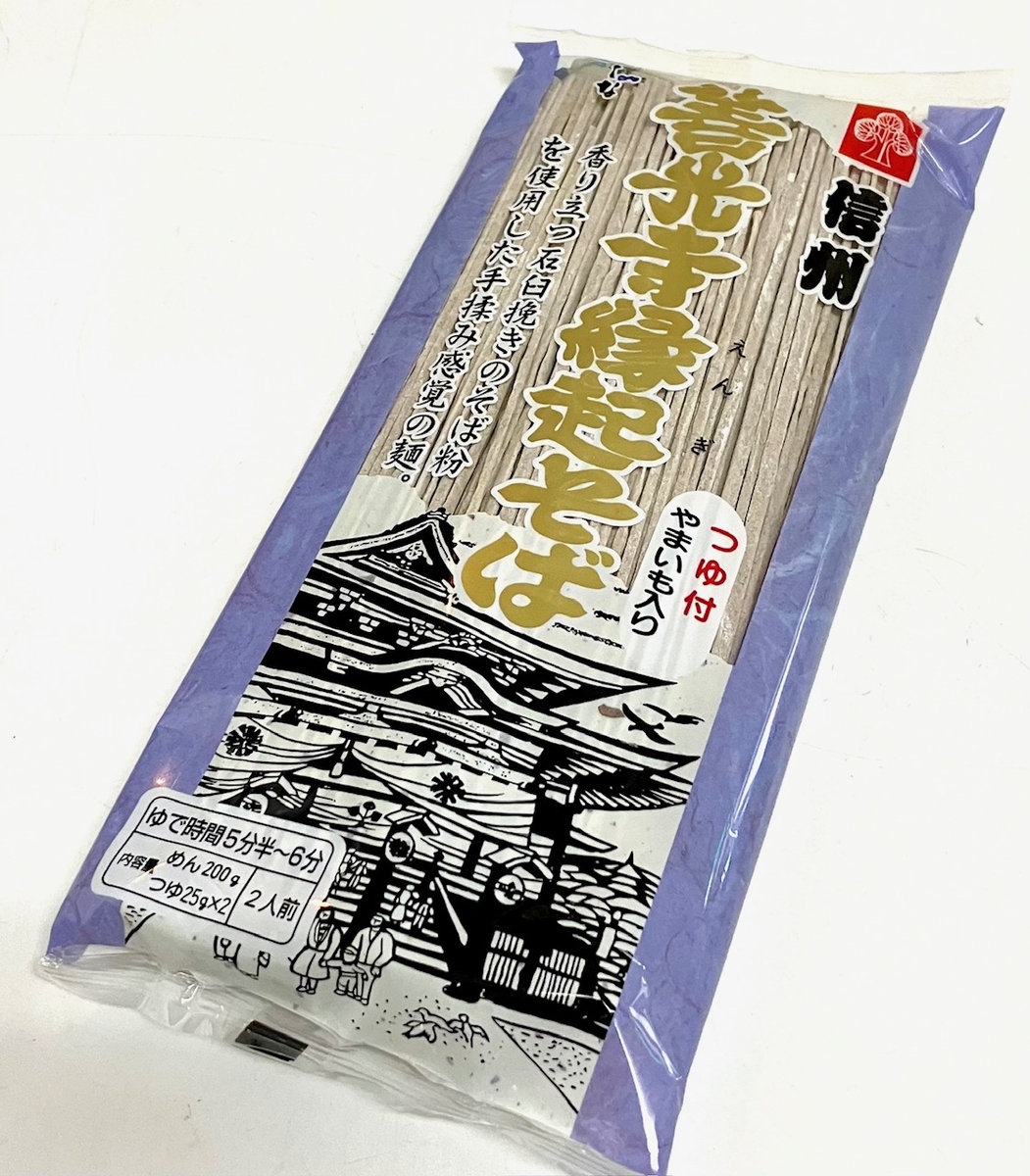 善光寺縁起そば(つゆ付き)200g×8袋 ツイートする シェアする 販売価格: 3,580円(税込み) 会員価格 3,400円(税込み) 通常価格 (税込み) 在庫 商品コード JANコード 数量 - + カートに入れる 入荷通知メールを希望する カテゴリー お蕎麦
